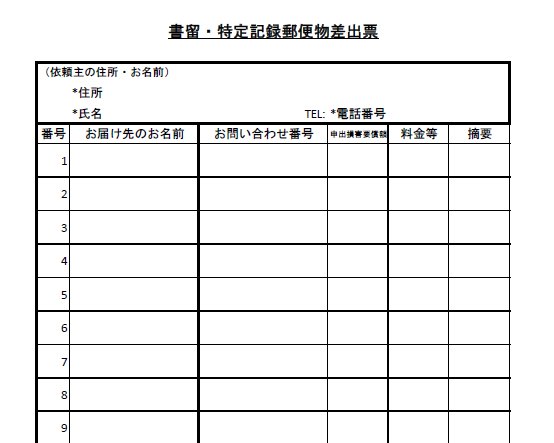書留・特定記録郵便物差出票はExcelで作ることができます【テンプレートあり】